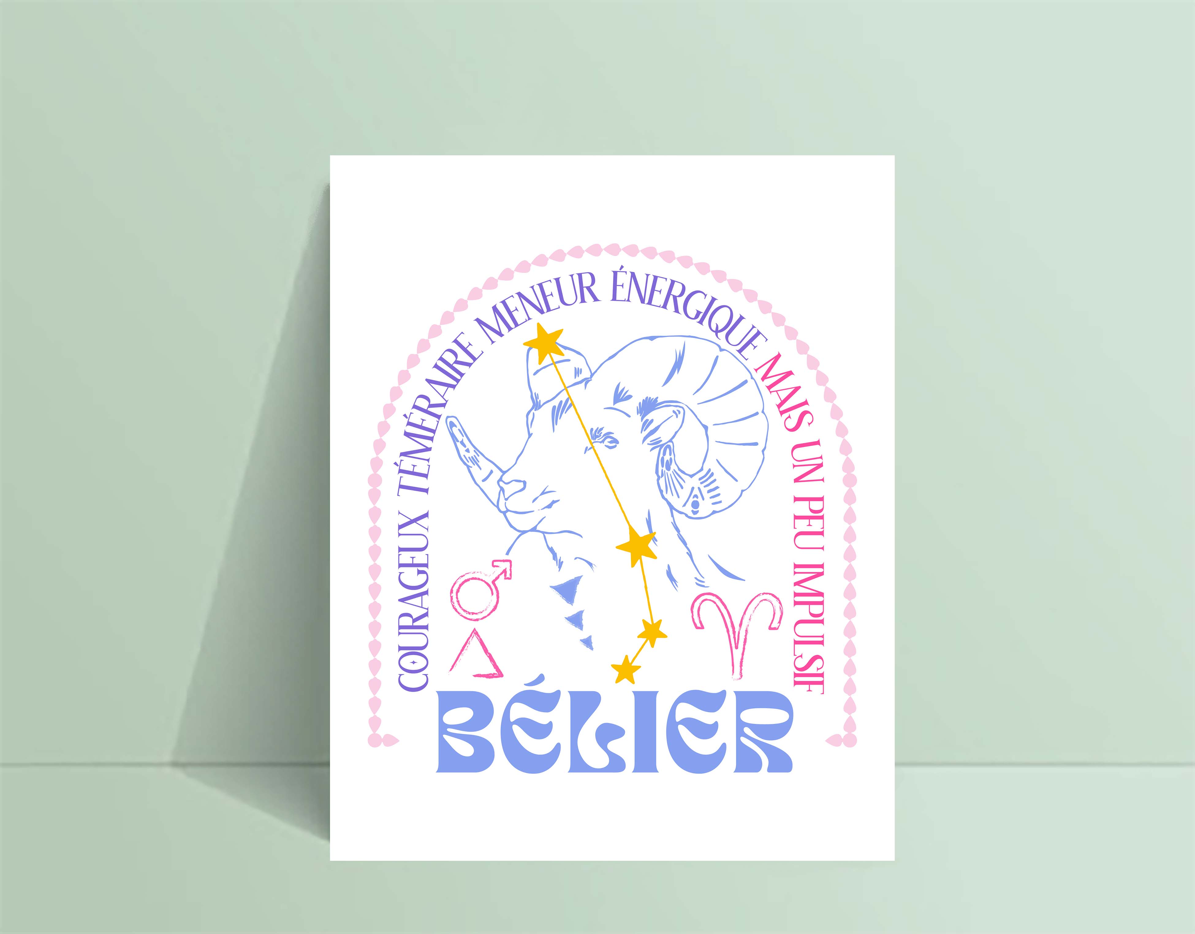 Décorez votre espace avec style grâce à l'affiche BÉLIER! Ajoutez une touche de couleur et de personnalité avec cette affiche unique. Faites ressortir votre côté espiègle et amusez-vous à trouver des jeux de mots avec la représentation du bélier. Laissez-vous guider par votre imagination et ajoutez de l'éclat à votre décoration!