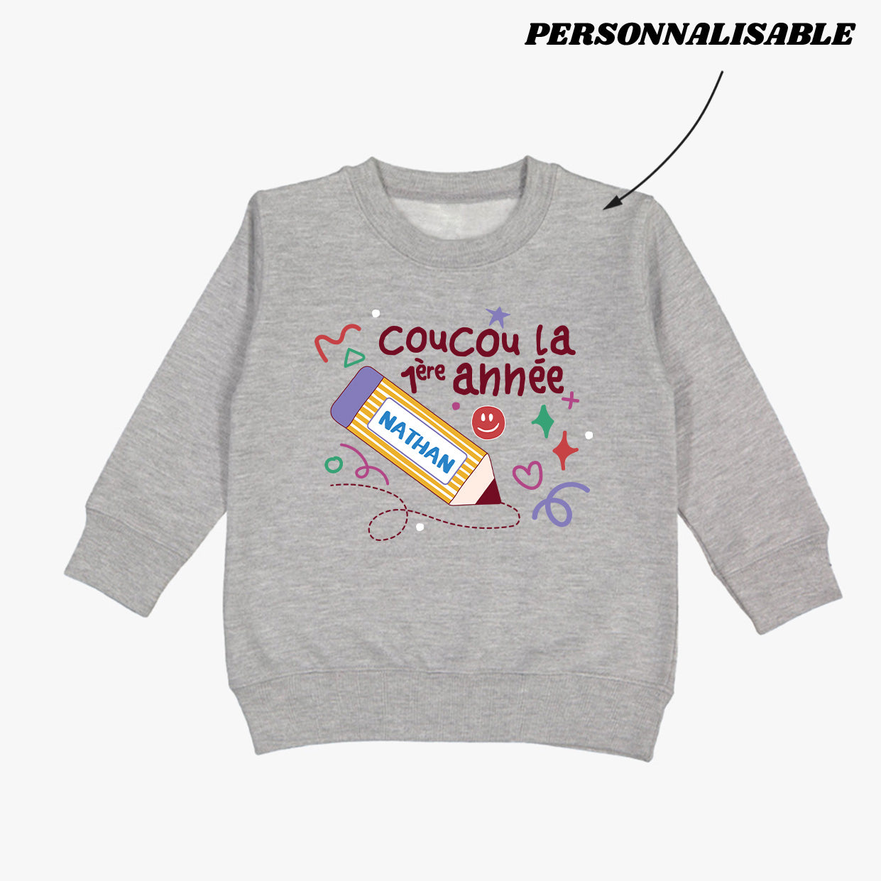 Ajoute le nom de ton enfant à ce crewneck trop mignon! Il sera fin prêt pour la rentrée, de la pré-maternelle à la 6ème année.