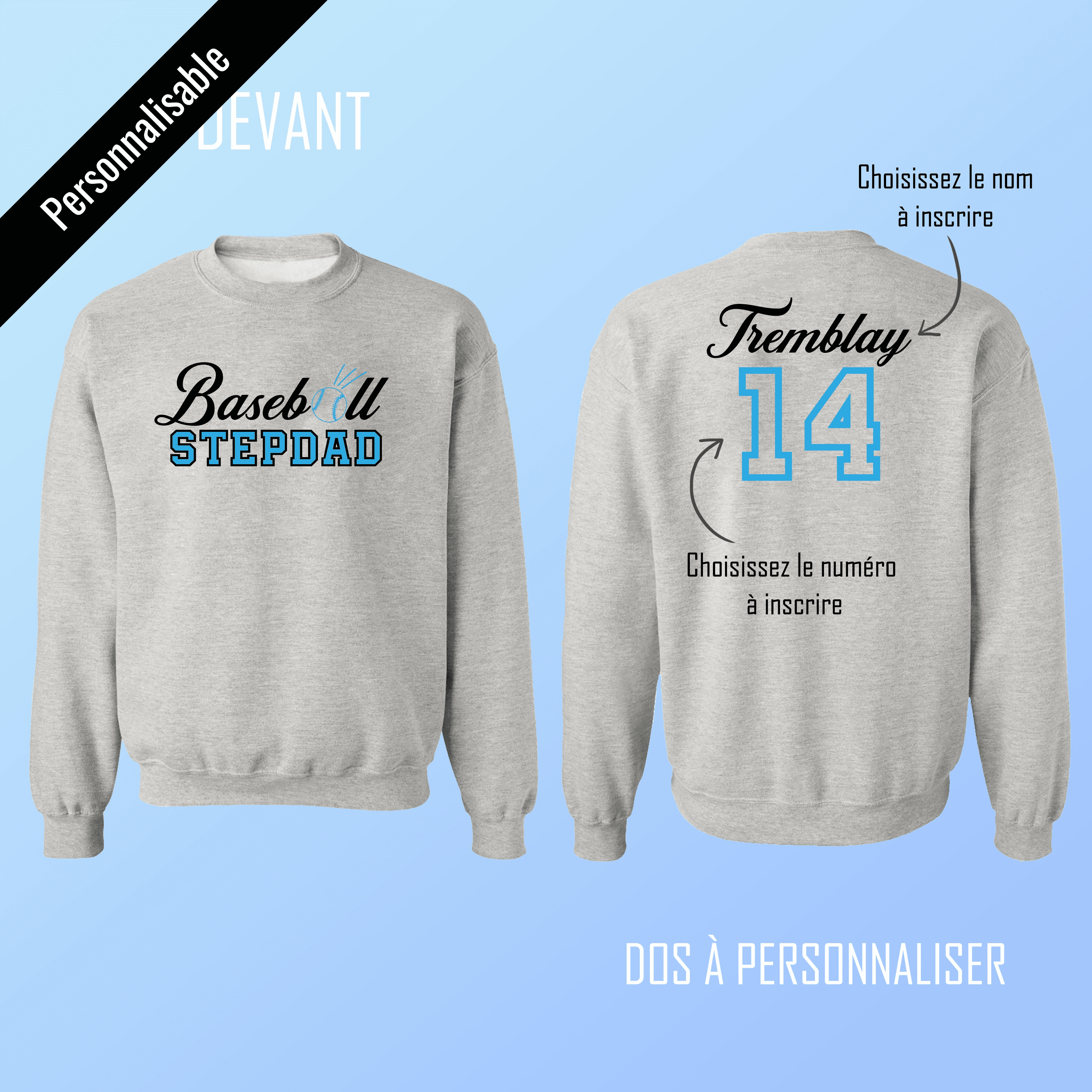 LE COTON OUATÉ PARFAIT À PERSONNALISER POUR Y METTRE LE NOM ET NUMÉRO DE VOTRE BELLE-FILLE OU DE VOTRE BEAU-FILS ! VOUS SEREZ LE FAN #1 DE VOTRE JOUEUR/JOUEUSE DE BASEBALL PRÉFÉRÉ(E) ET LE BEAU-PÈRE LE PLUS COOL DE L'ESTRADE !
