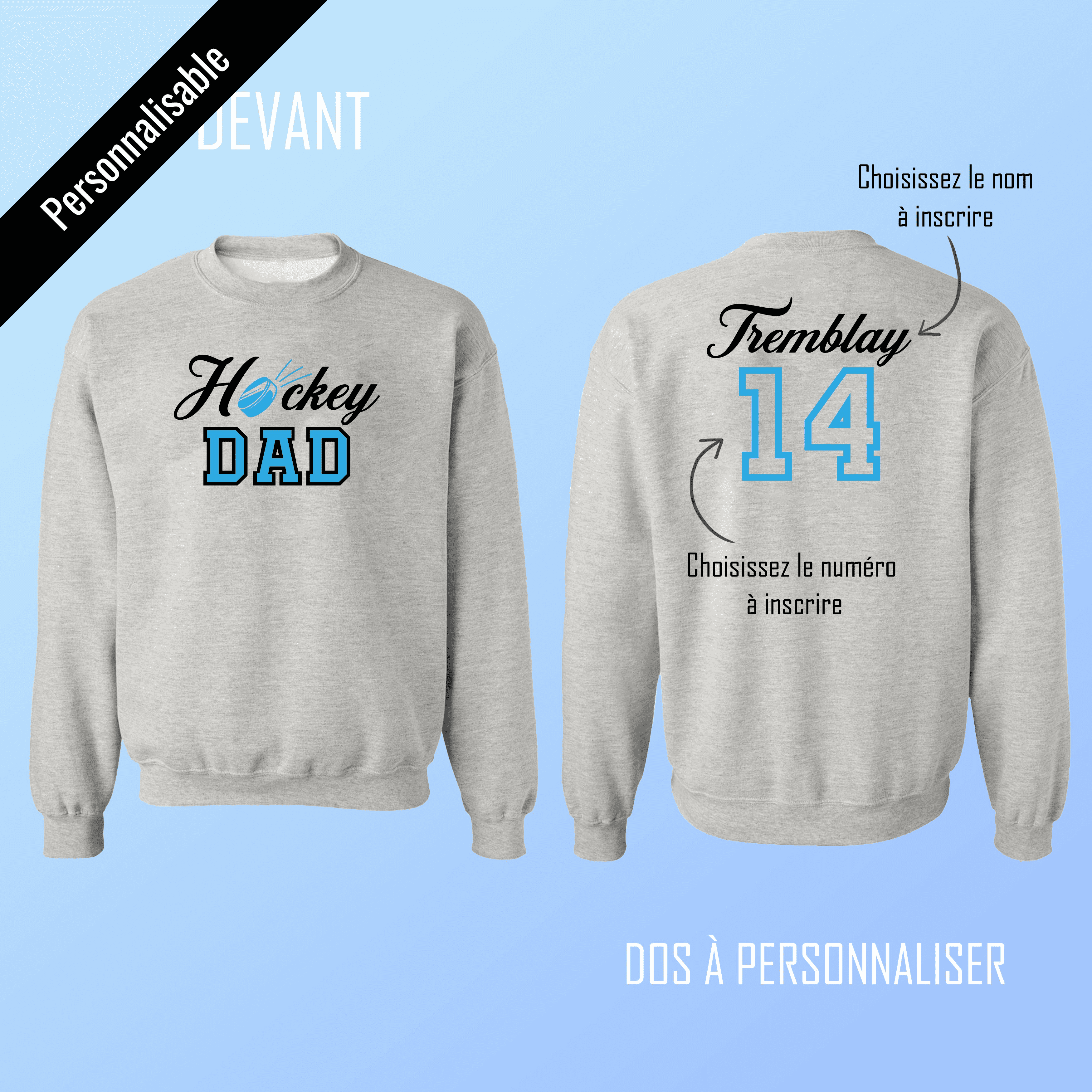 LE COTON OUATÉ PARFAIT À PERSONNALISER POUR Y METTRE LE NOM ET NUMÉRO DE VOTRE ENFANT ! VOUS SEREZ LA FAN #1 DE VOTRE JOUEUR/JOUEUSE DE HOCKEY PRÉFÉRÉ(E) ET LE PAPA LE PLUS COOL DANS LES ESTRADES!