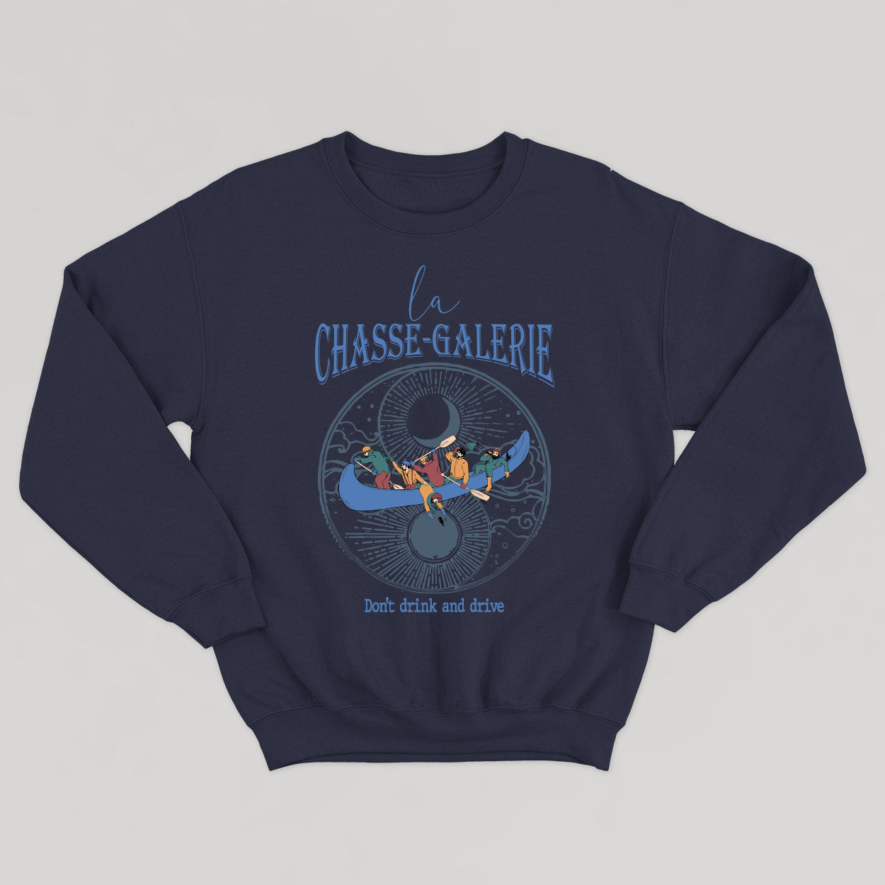 Affiche fièrement ton amour des légendes québécoises avec ce crewneck au look vintage. Tu adoreras passer la saison froide bien au chaud dans un coton ouaté folklorique douillet. Un crewneck idéal pour les amoureux et amoureuses du folklore québécois et des histoires à dormir debout! Vous y retrouverez même un petit rappel de prudence : don't drink and drive.