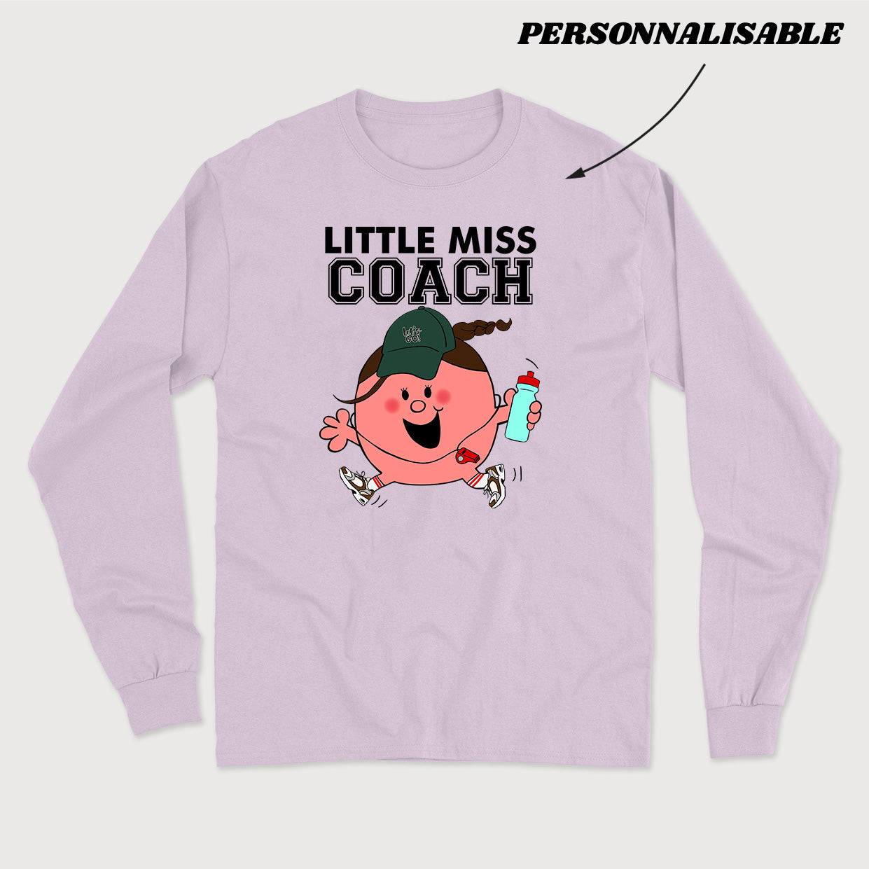Personnalisez votre commande en indiquant en commentaire quel titre vous souhaitez donner à votre Little Miss. À noter que la section personnalisable est uniquement le mot COACH. la section LITTLE MISS et le dessin sont fixes.
