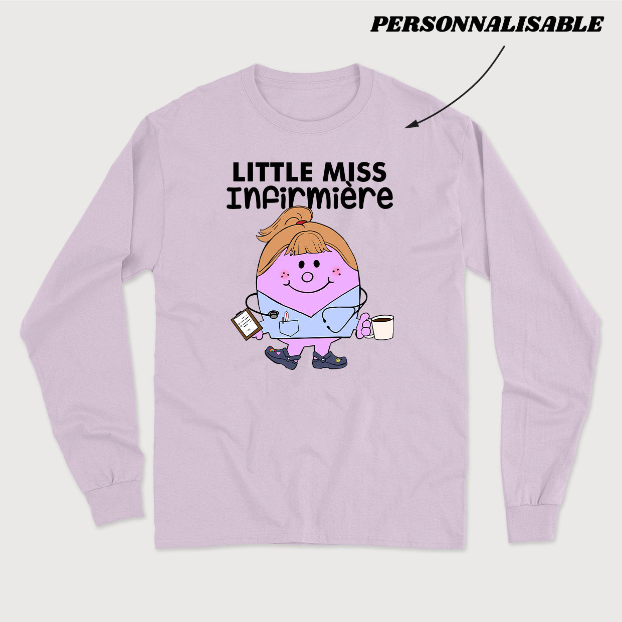 Personnalisez votre commande en indiquant en commentaire quel titre vous souhaitez donner à votre Little Miss. À noter que la section personnalisable est uniquement le mot INFIRMIÈRE. la section LITTLE MISS et le dessin sont fixes.