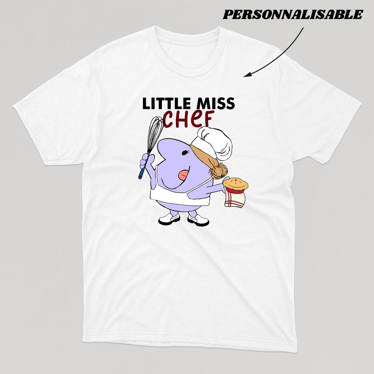 Personnalisez votre commande en indiquant en commentaire quel titre vous souhaitez donner à votre Little Miss. À noter que la section personnalisable est uniquement le mot CHEF , la section LITTLE MISS et le dessin est fixe.