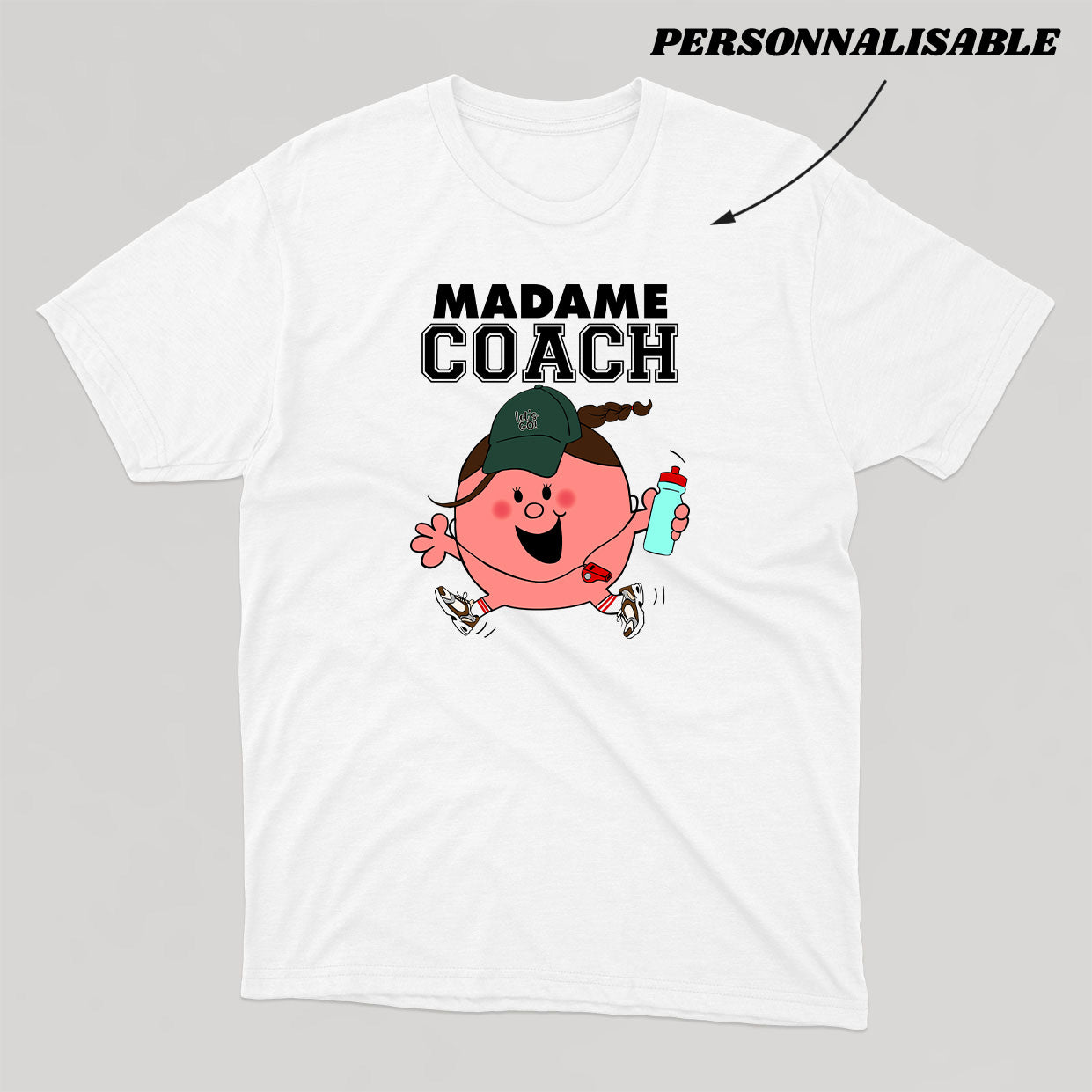 Personnalisez votre commande en indiquant en commentaire quel titre vous souhaitez donner à votre MADAME. À noter que la section personnalisable est uniquement le mot COACH, la section MADAME et le dessin sont fixes.
