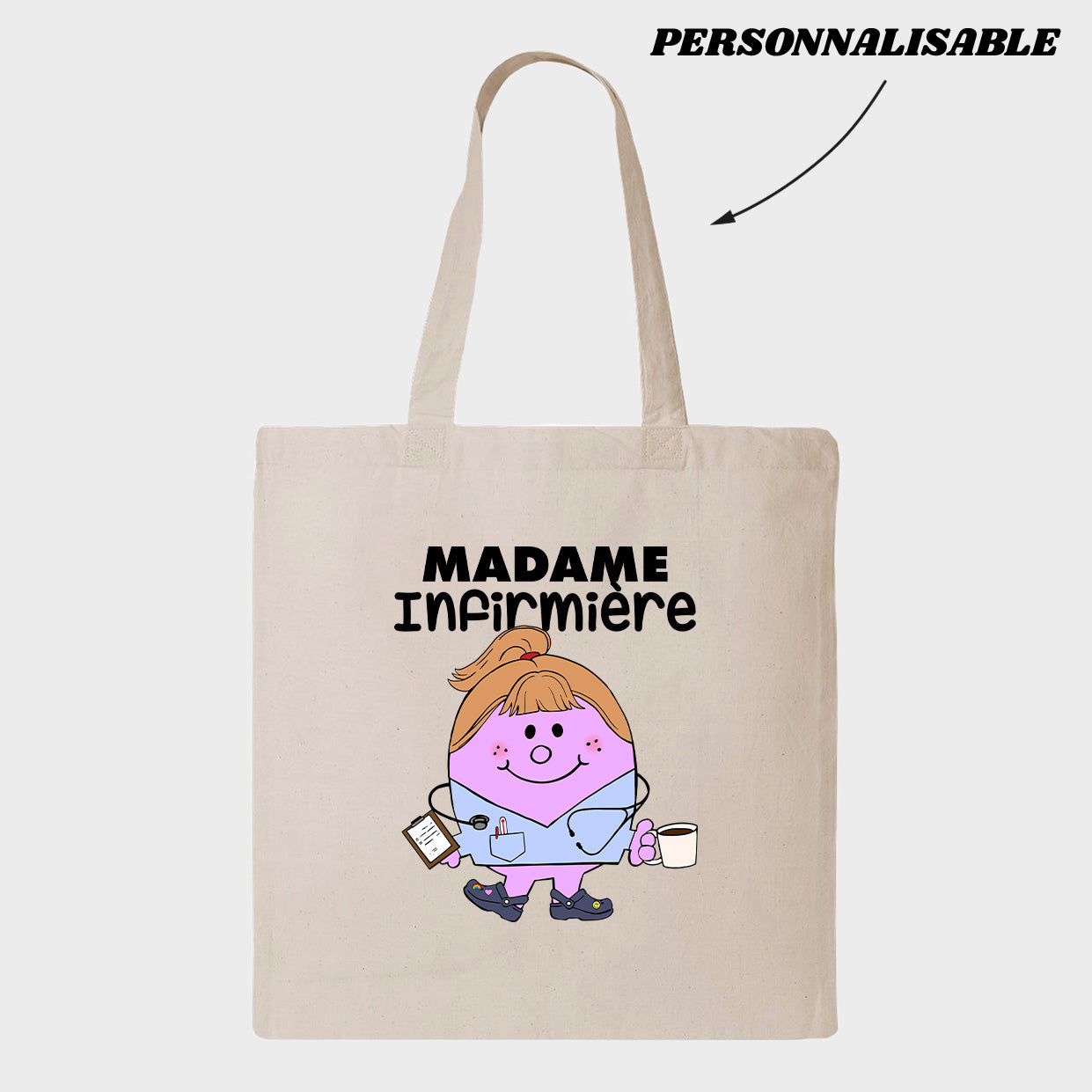 Personnalisez votre commande en indiquant en commentaire quel titre vous souhaitez donner Ă votre LITTLE MISS. Ă noter que la section personnalisable est uniquement le mot INFIRMIĂRE, la section MADAME et le dessin sont fixes. Â