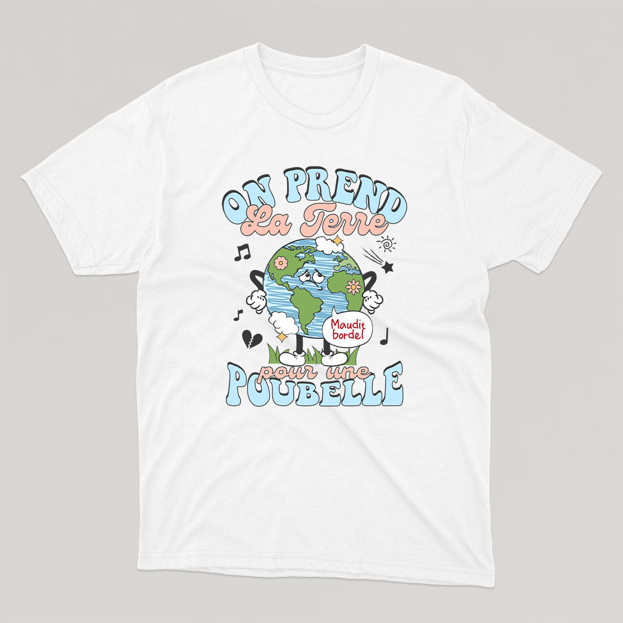 On prend la Terre pour une poubelle, maudit bordel! Ce chandail est un hommage à la chanson de 2003, mais aussi une occasion de souligner le Jour de la Terre. Une façon de marier nostalgie et conscientisation.